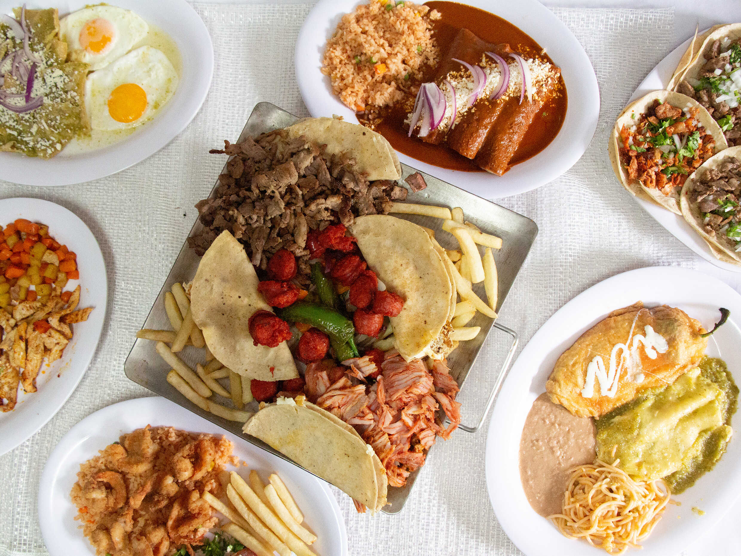 PASTOR BISTECK CHORIZO CEBOLLA Y 4 QUESADILLAS CON PAPAS ALA FRACESA