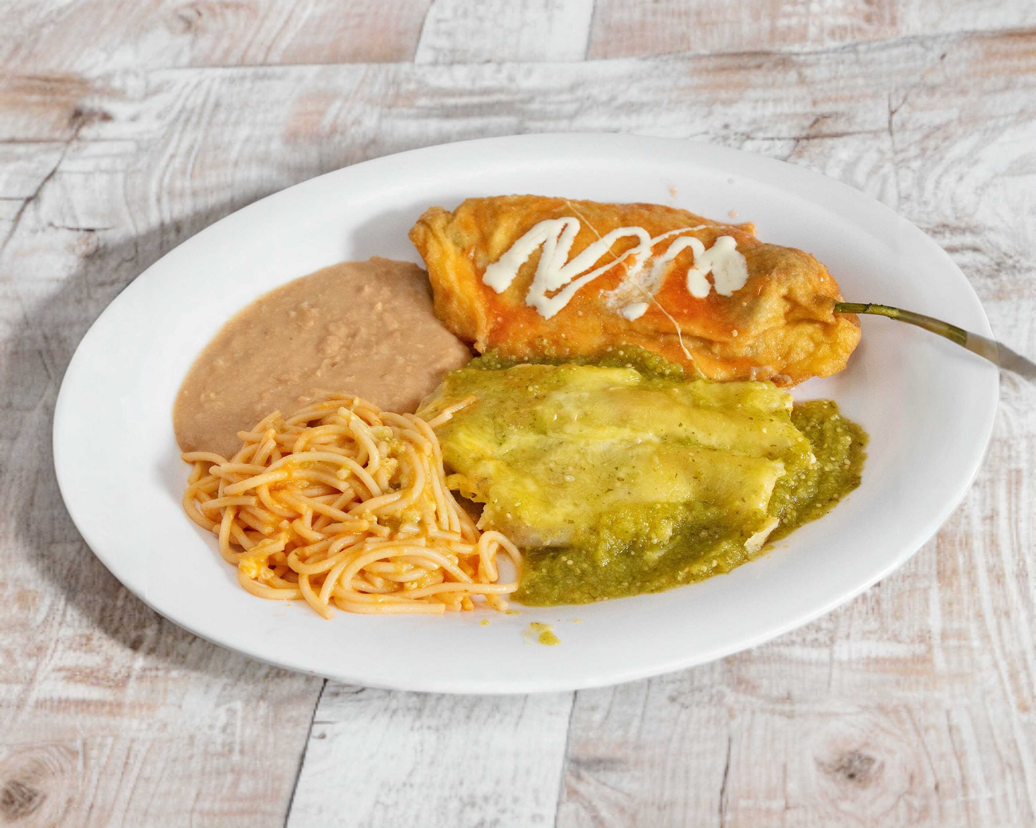DOS ENCHILADAS Y UN CHILE RELLENO