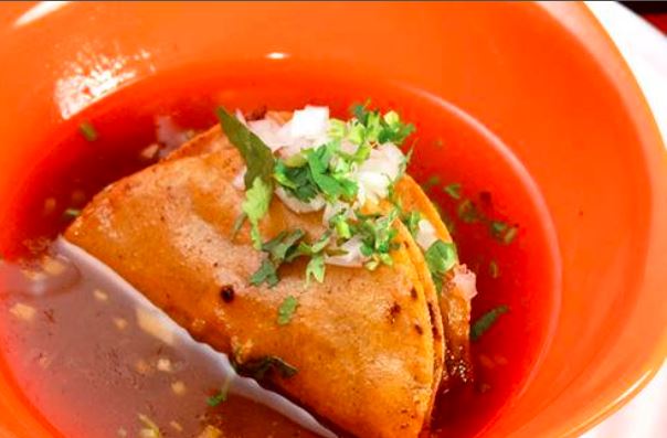 Taco dorado ahogado en consome