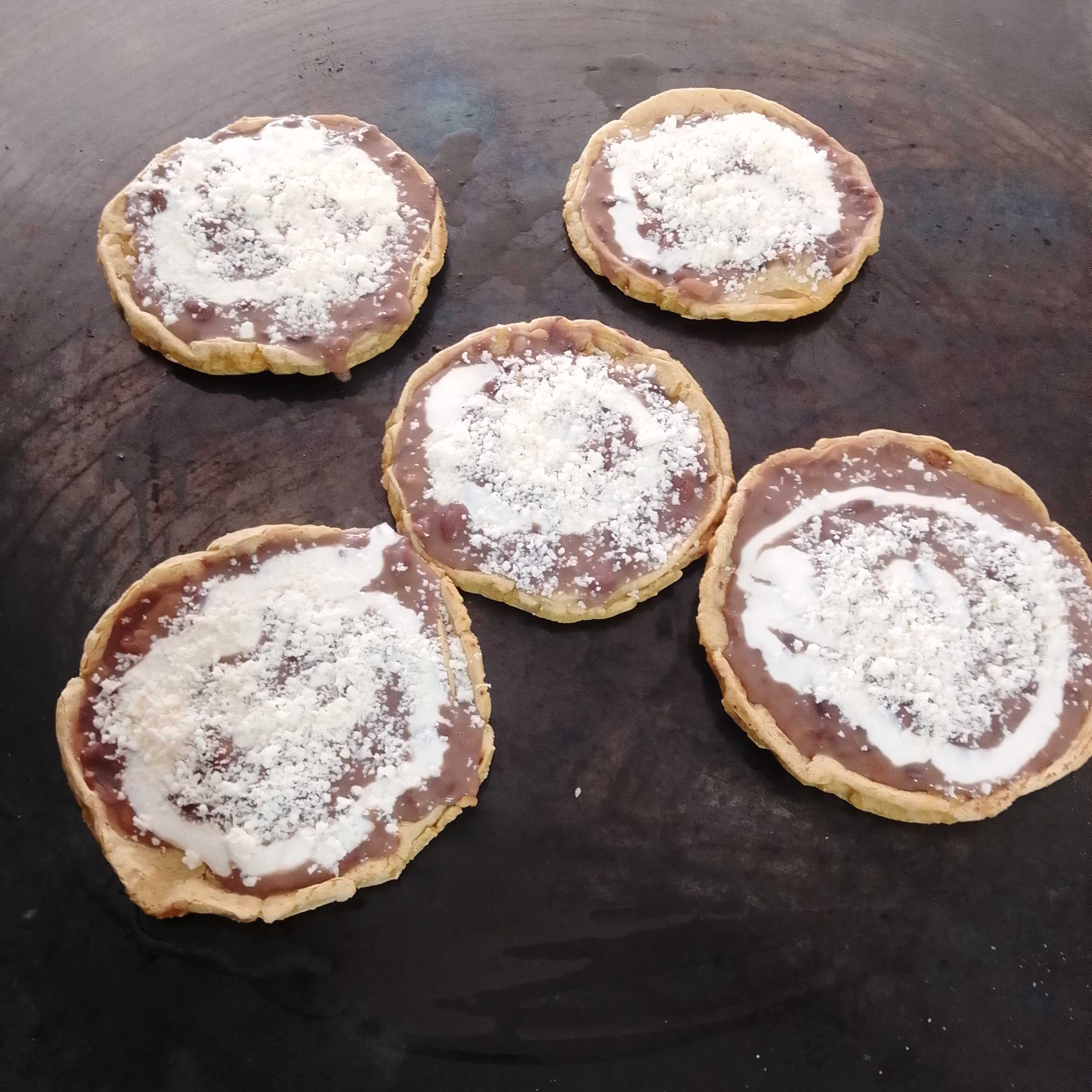 orden de enchiladas morelianas con papa, zanahoria, lechuga, crema, queso y chiles en vinagre