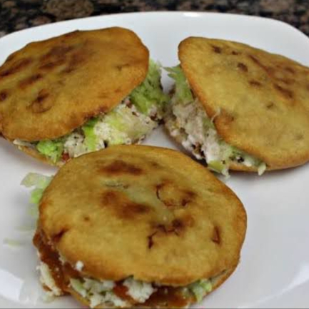 Gordita de maíz rellena de guiso a elegir: pollo, bistec, chicharrón, carne deshebrada, chorizo con papas, rajas, champiñones, o solo queso, servidas con lechuga, crema, queso y salsa al gusto