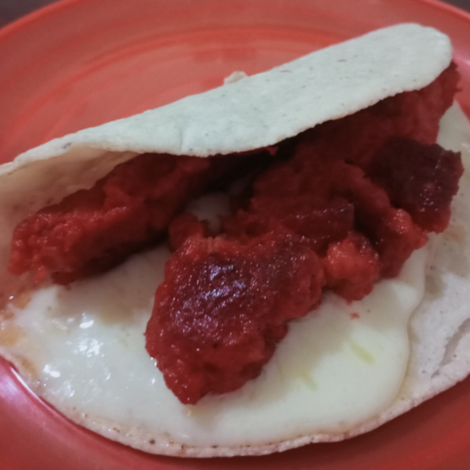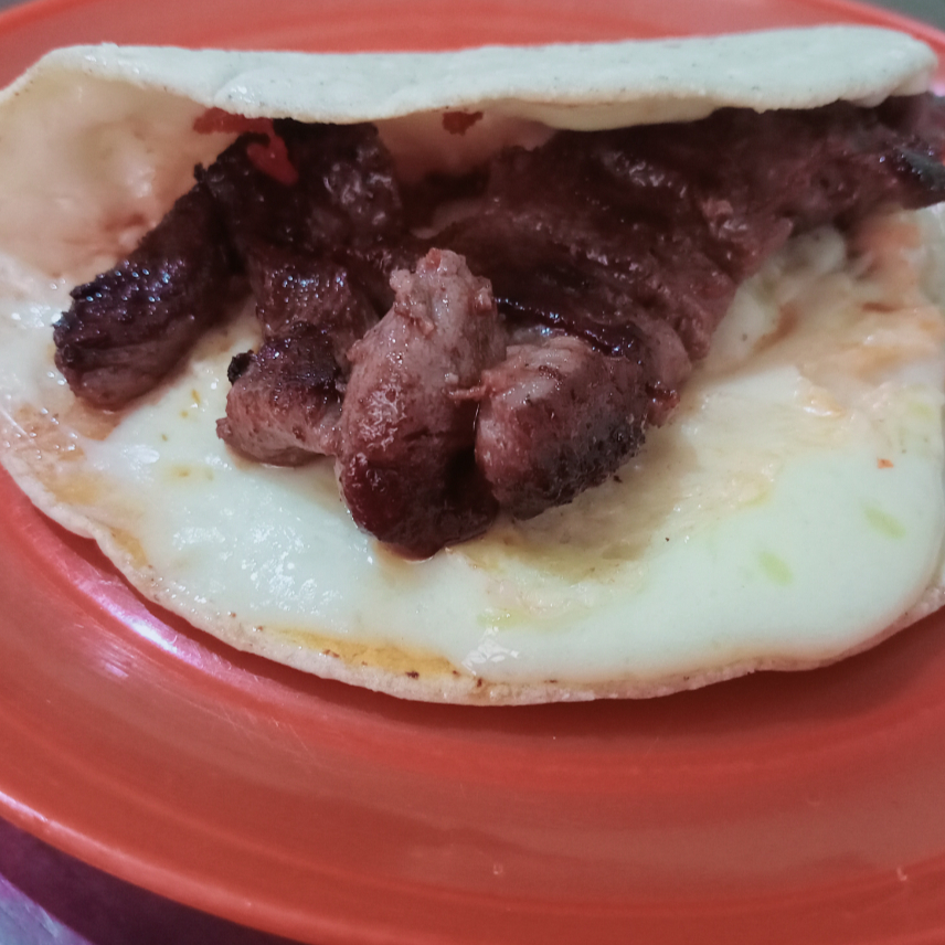 Tortilla de comal con Chorizo y queso asadero...delicioso