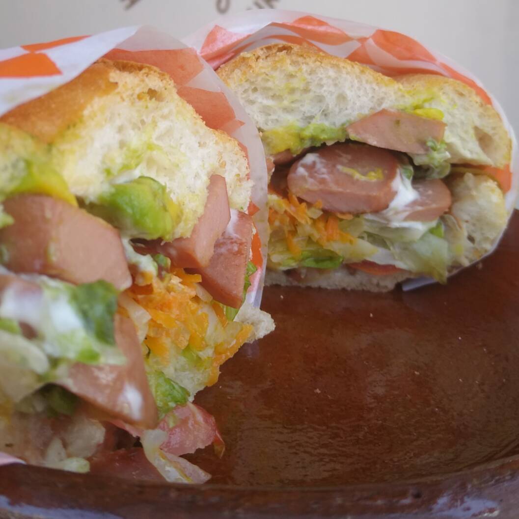 Telera🥖 con aderezo 🍚, lechuga🥬, zanahoria 🥕, jitomate 🍅,cebolla🧅, aguacate🥑 y Jamón 🥓