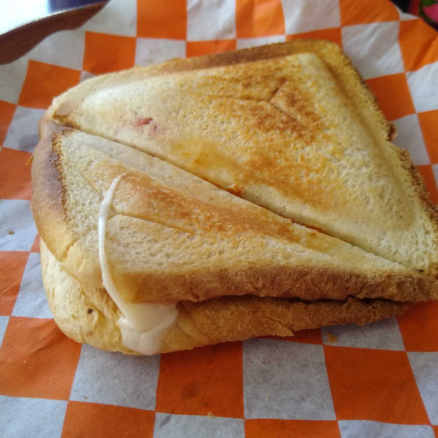Pan de caja con aderezo, Jamón y queso para fundir.