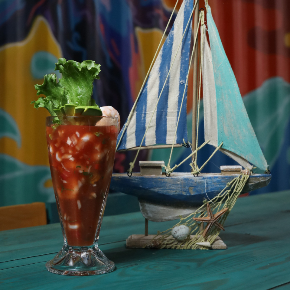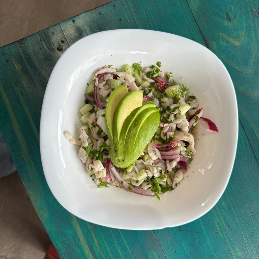camaron, pulpo, verduras y aguacate