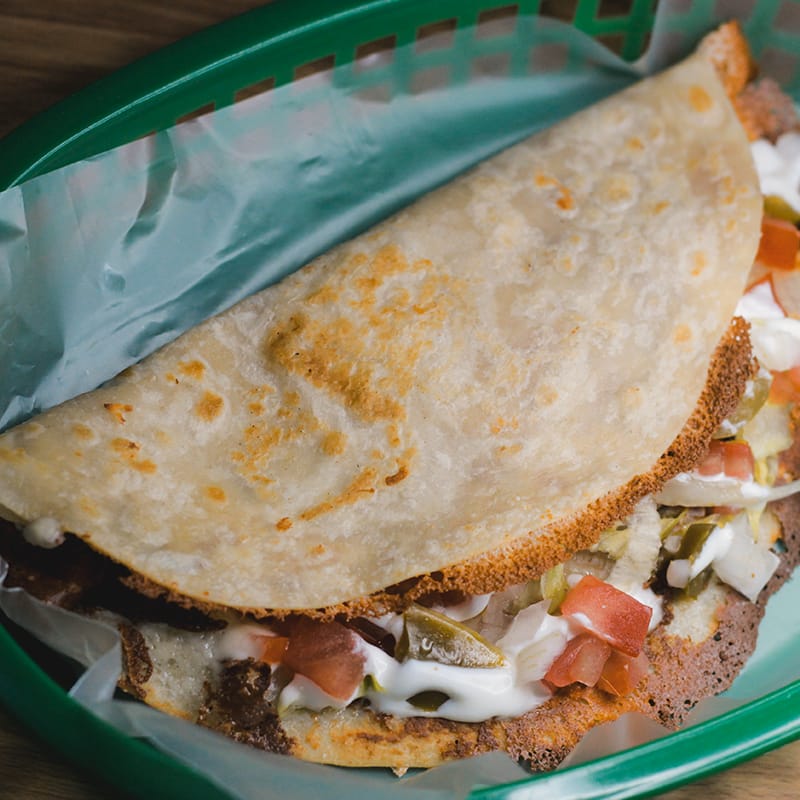 Deliciosa quesadilla con queso asadero y carne deshebrada.