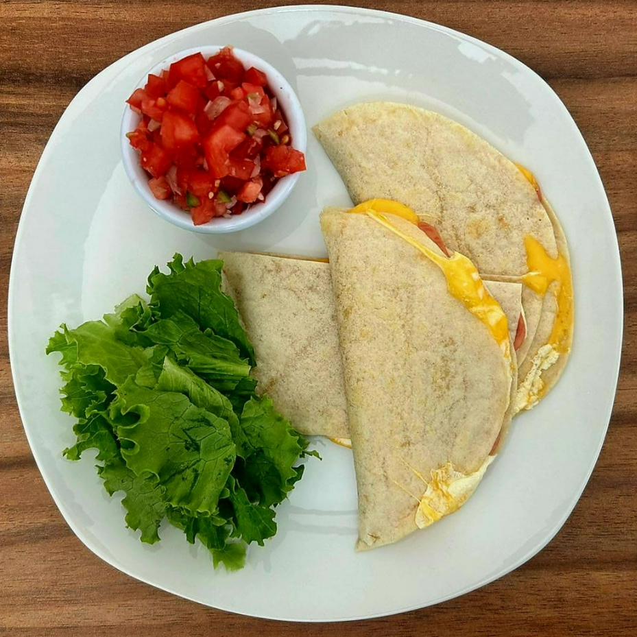 Sincronizadas con tortillas de harina, queso oaxaca, queso amarillo y jamón, acompañados con lechuga y un pico de gallo.
