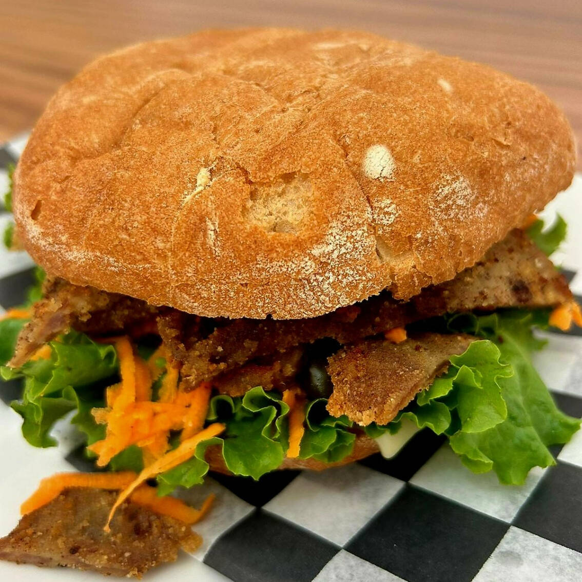 Pan ligeramente tostado con milanesa, mayonesa, lechuga, jitomate, queso blanco, zanahoria y chiles en vinagre.