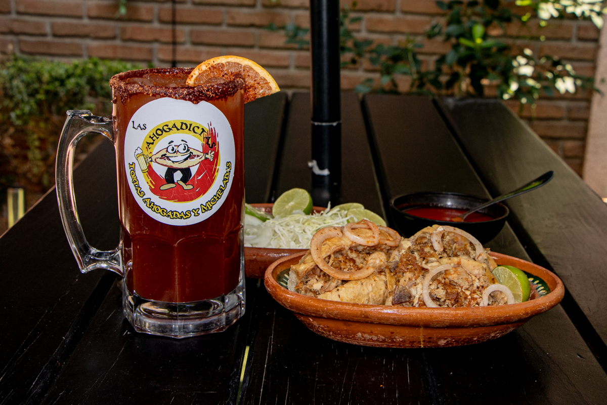 1 Torta ahogadicta, 2 tacos ahogados y bebida.