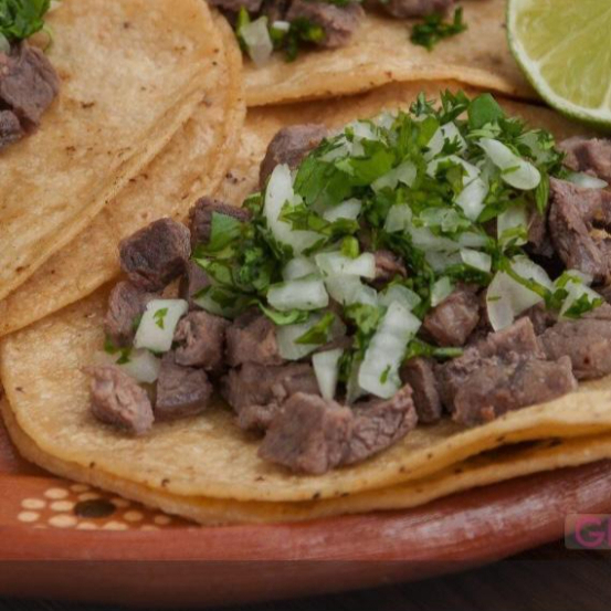 doble tortilla, hecha al comal, cebolla, cilantro, salsa y limon
