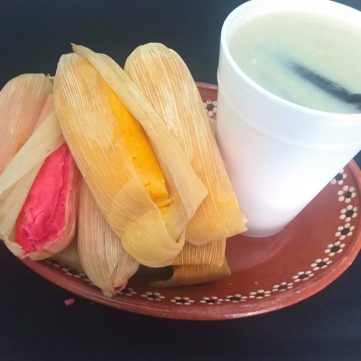 4 tamales de tu eleccion acompañado con dos atoles personales