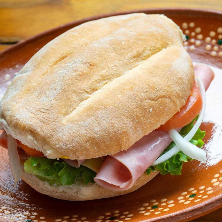 Papas a la francesa, carne, queso oaxaca, tocino, jamón, lechuga, jitomate, cebolla y líquidos