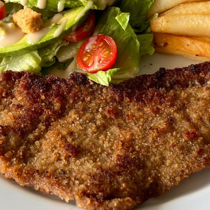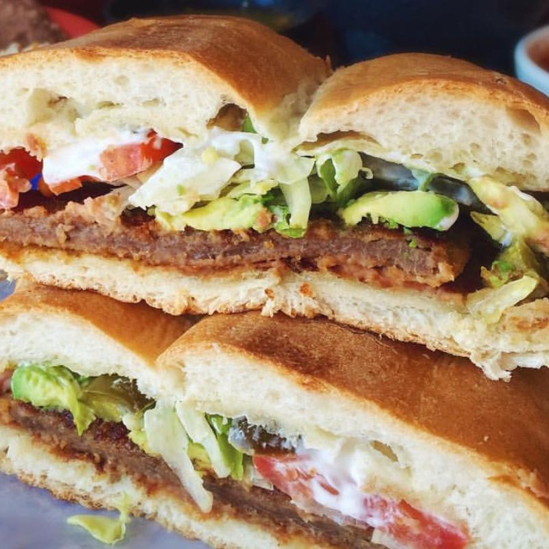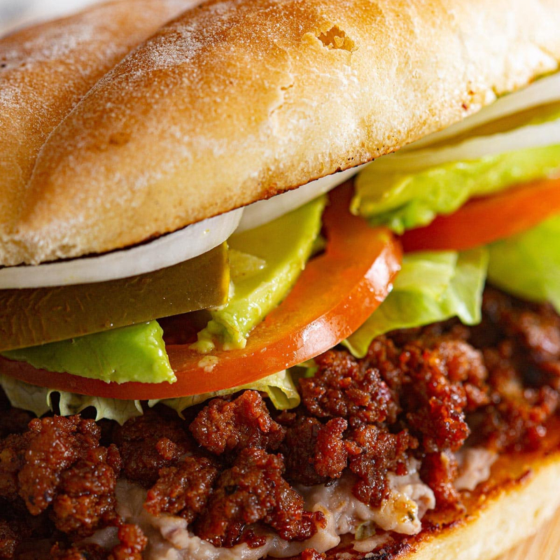 Papas a la francesa, carne, lechuga, jitomate, cebolla y líquidos