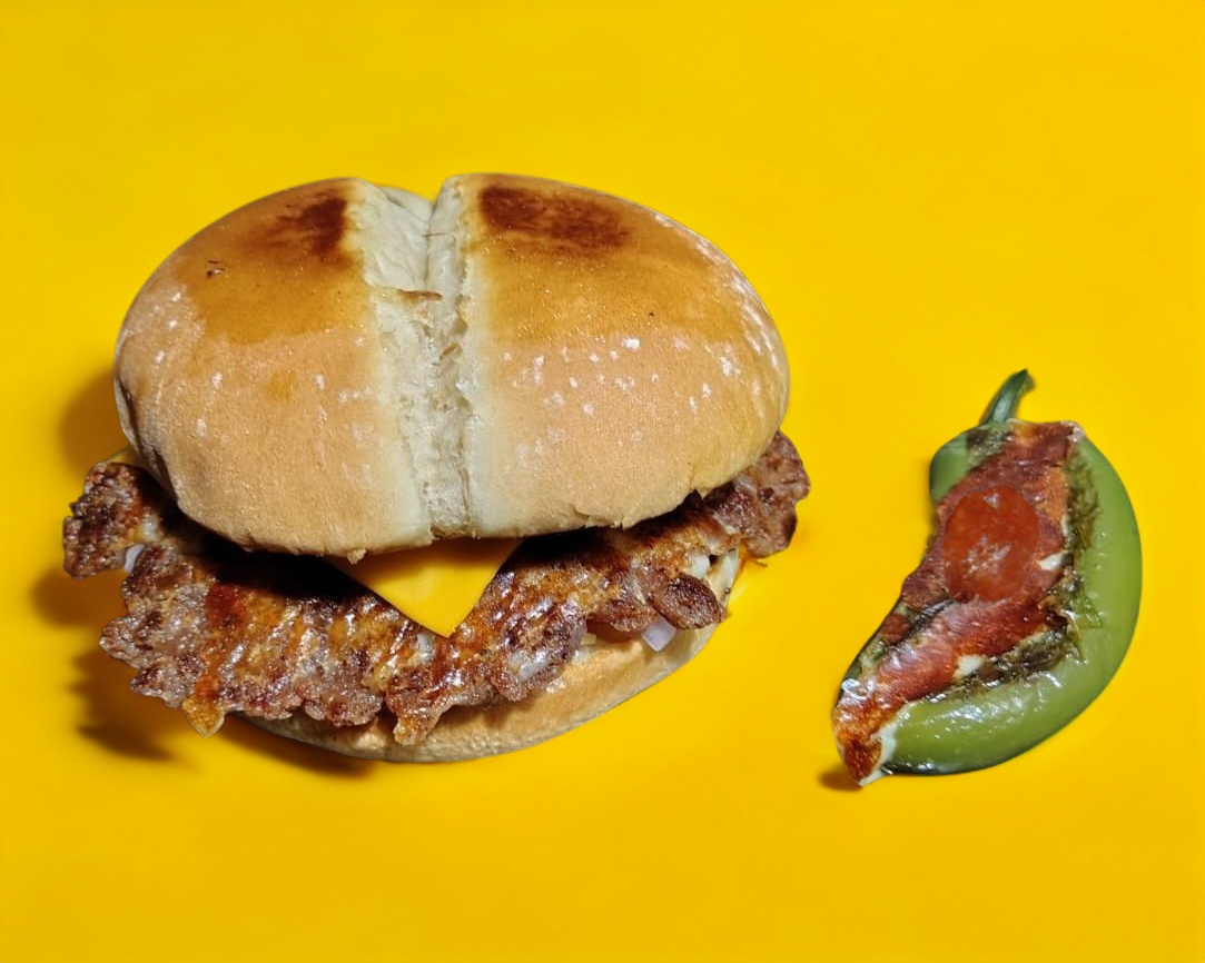 Doble Carne de res sazonada al estilo los Caprichosos, queso amarillo y queso asadero, verduras y liquidos.