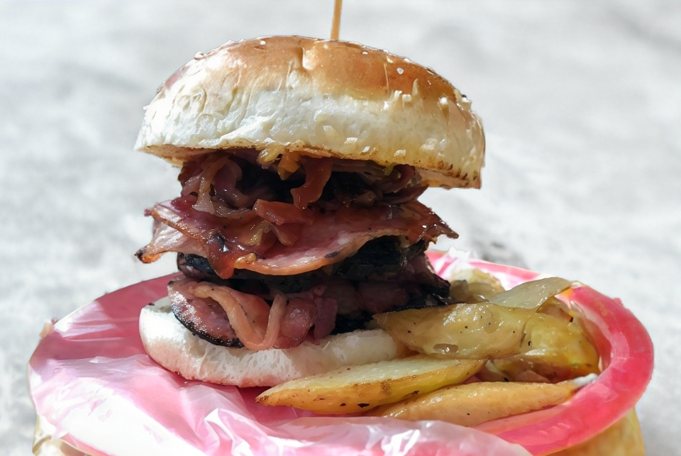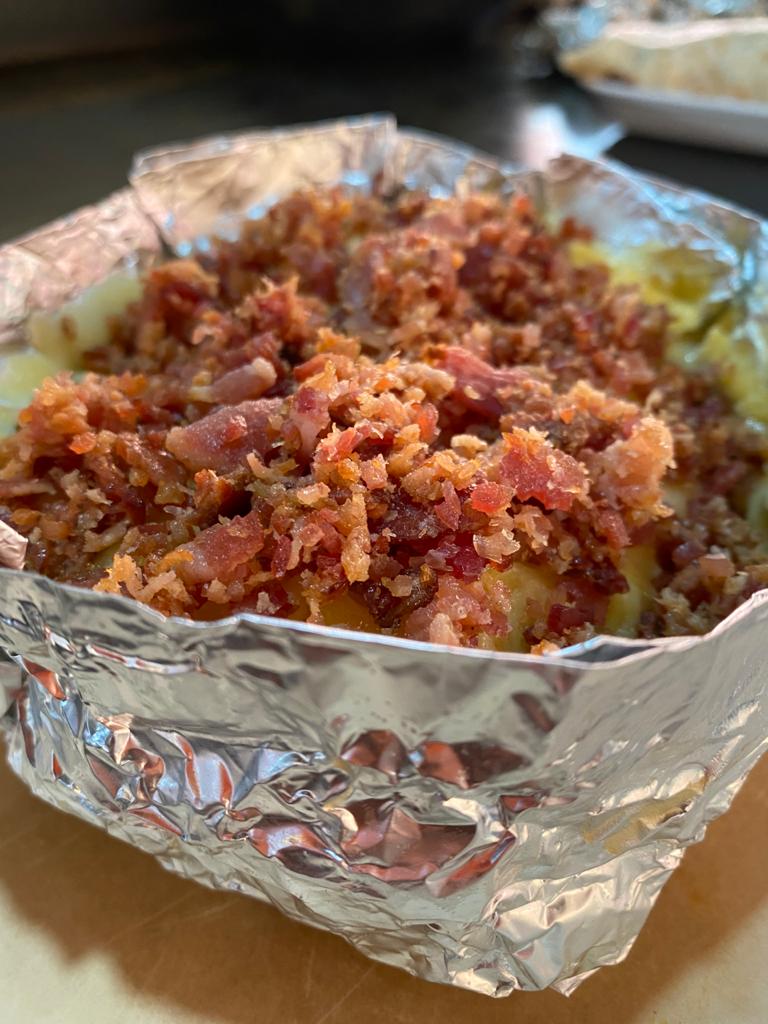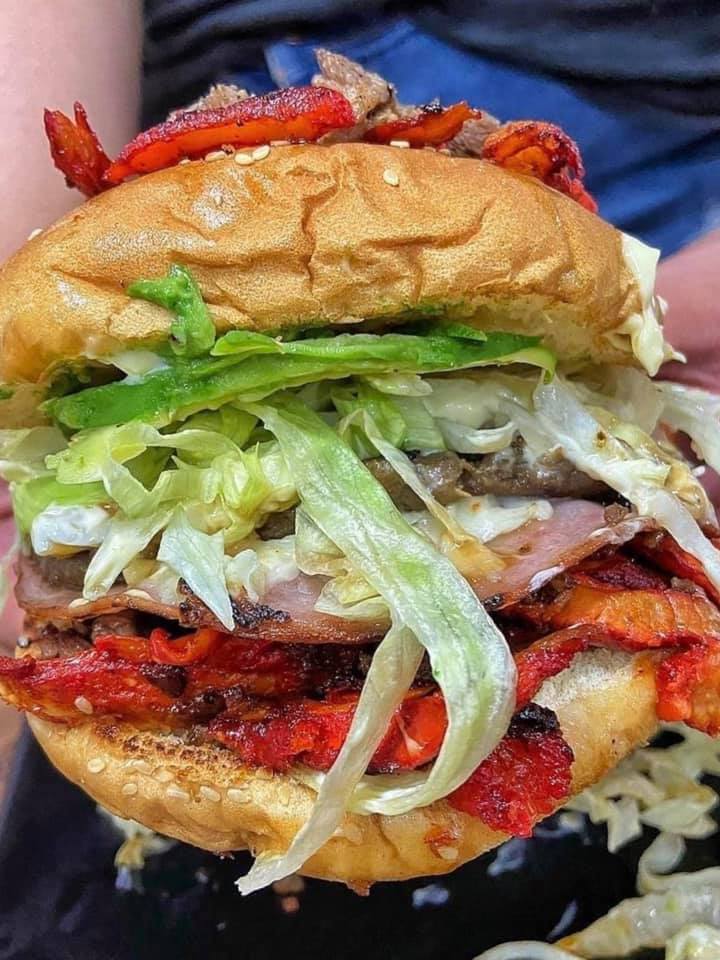 Con queso asadero, carne asada y tocino(no incluye complementos)