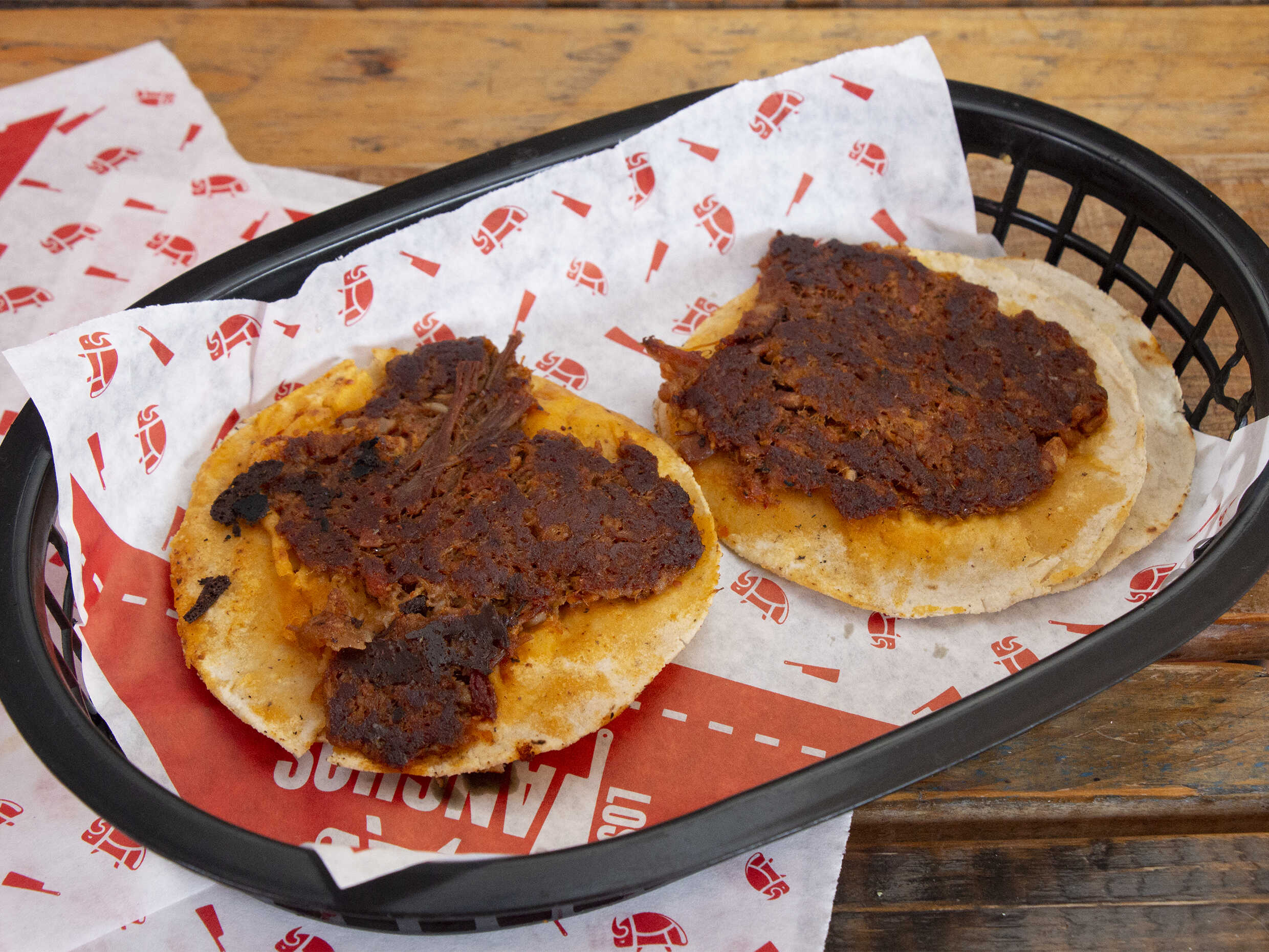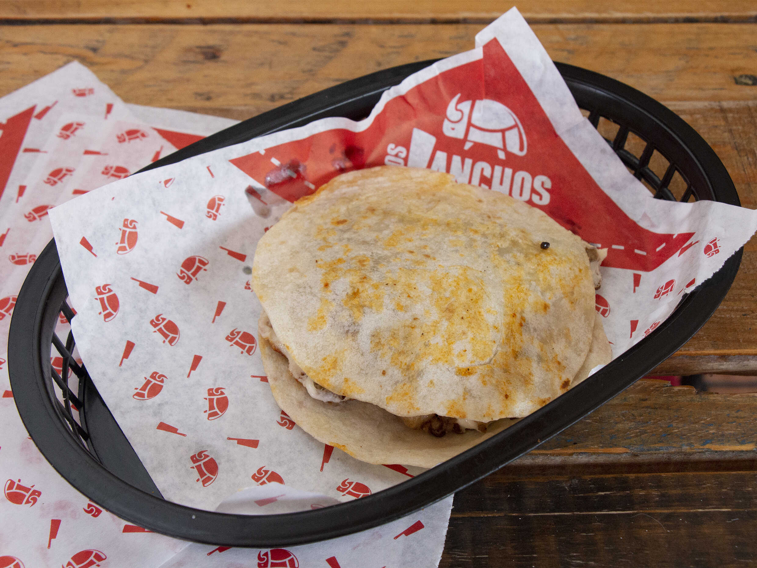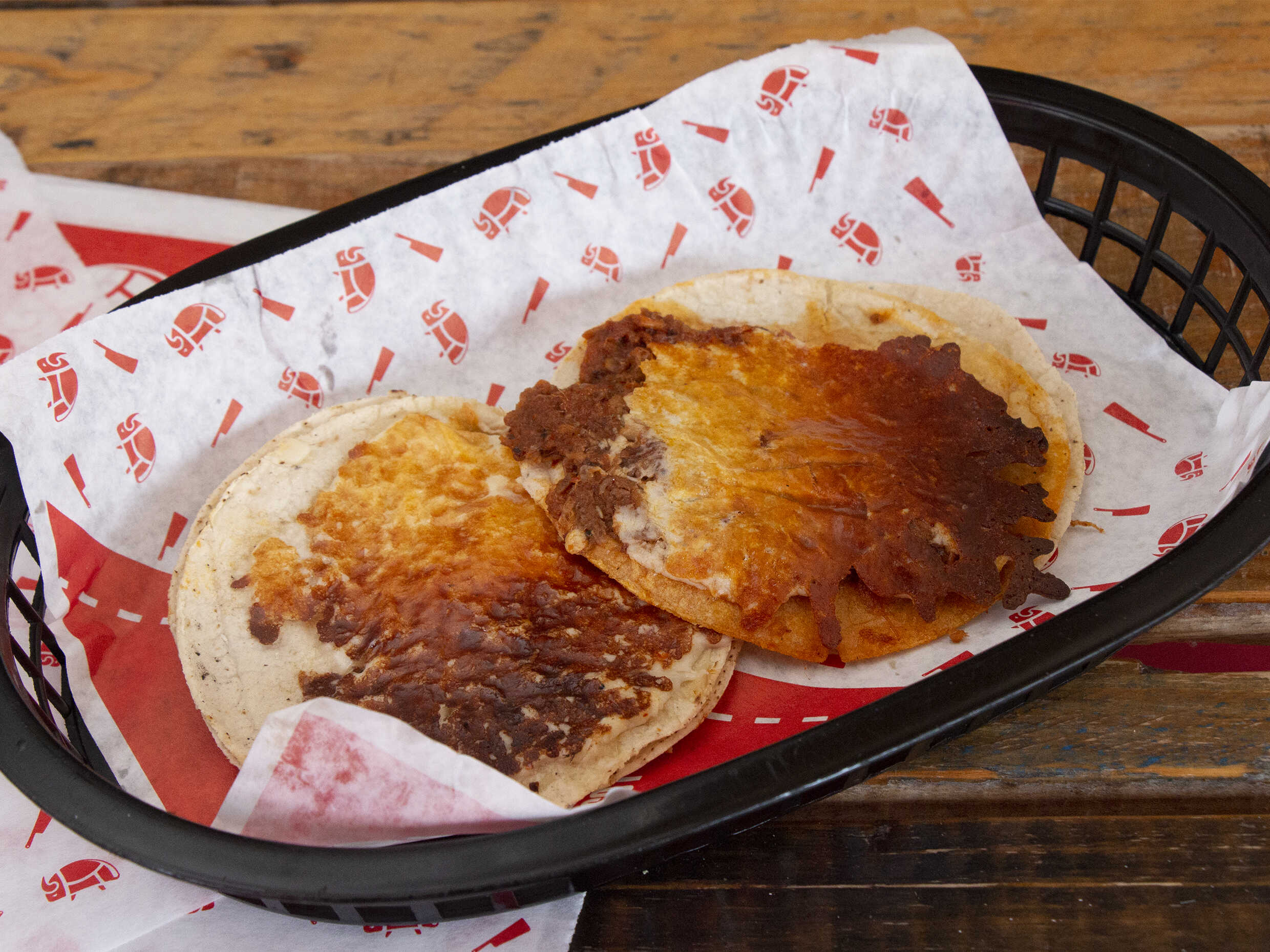 Taco suavecito de barbacoa de res cubierto por una deliciosa capa de queso oaxaca dorada en el comal
