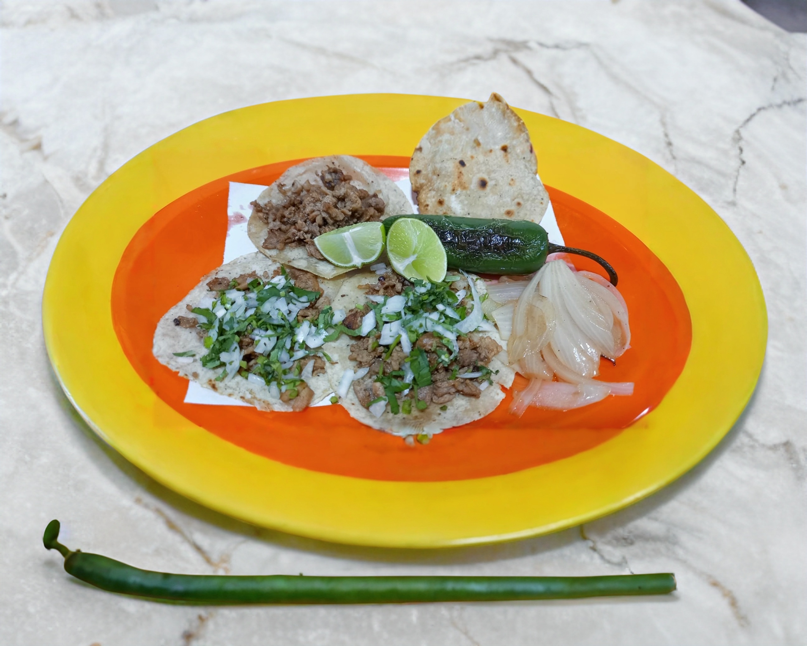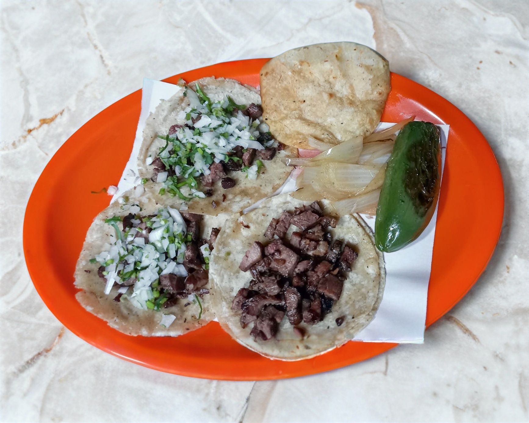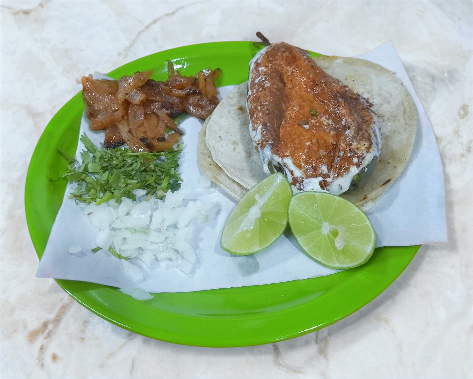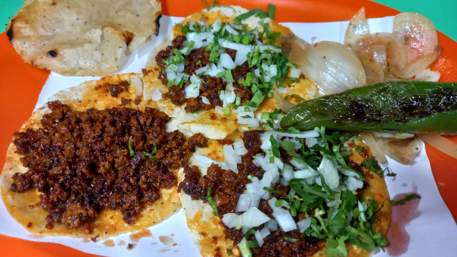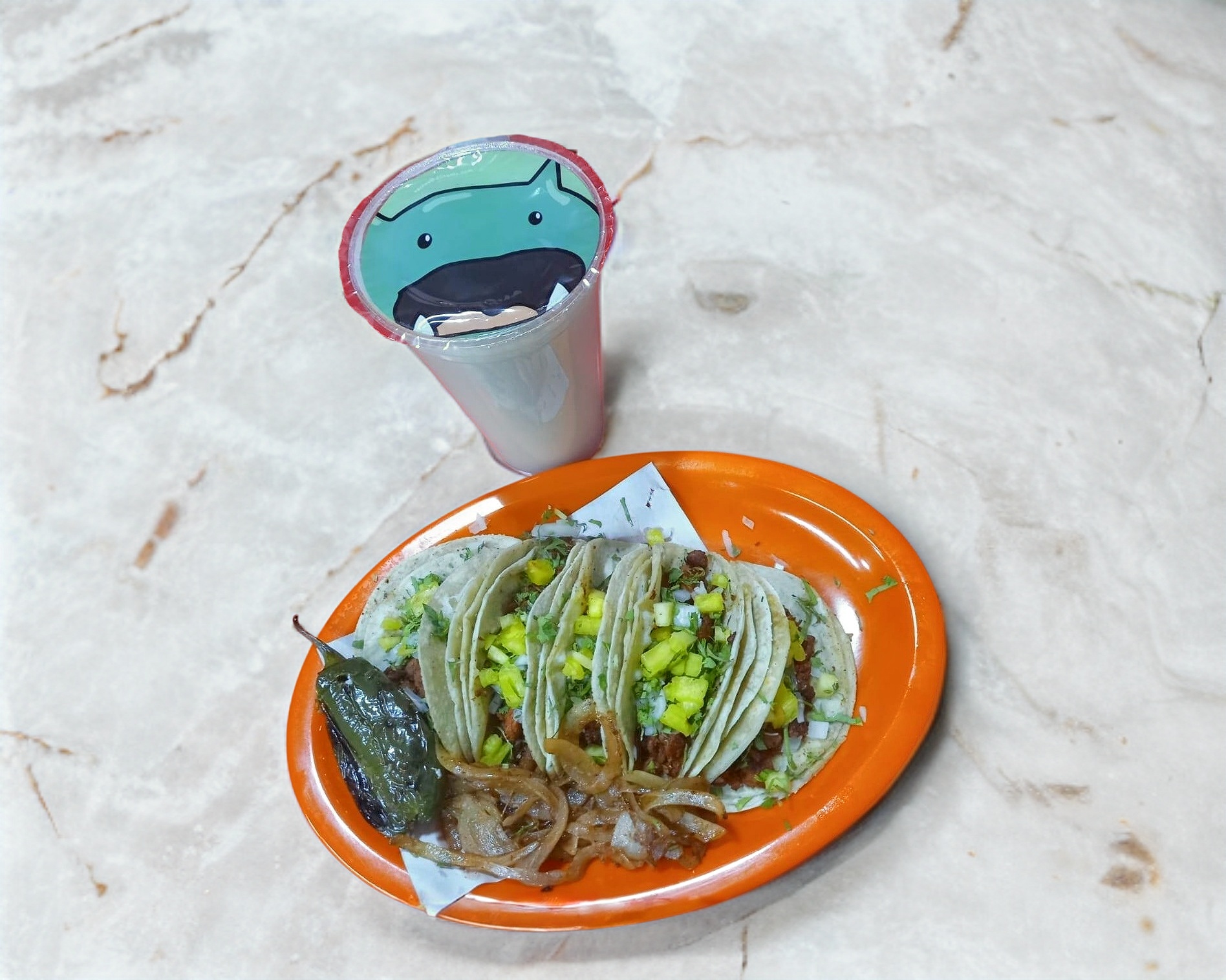 Delicioso taco de jalapeño relleno de queso con tortillas de maíz, cilantro y cebolla. Recuerda que no solo pagas el producto sino también el servicio de DiDi