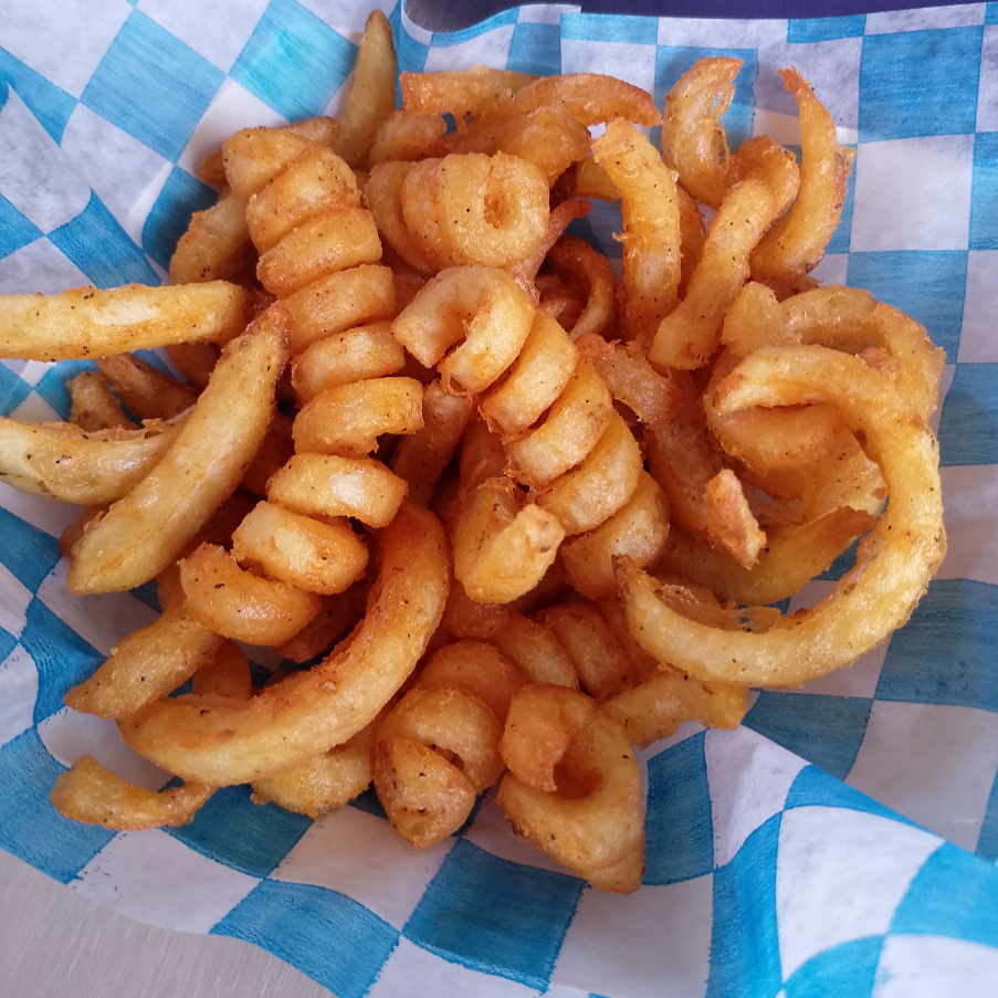 delicosas papas tipo espiral acompañadas de catsup y queso de nachos