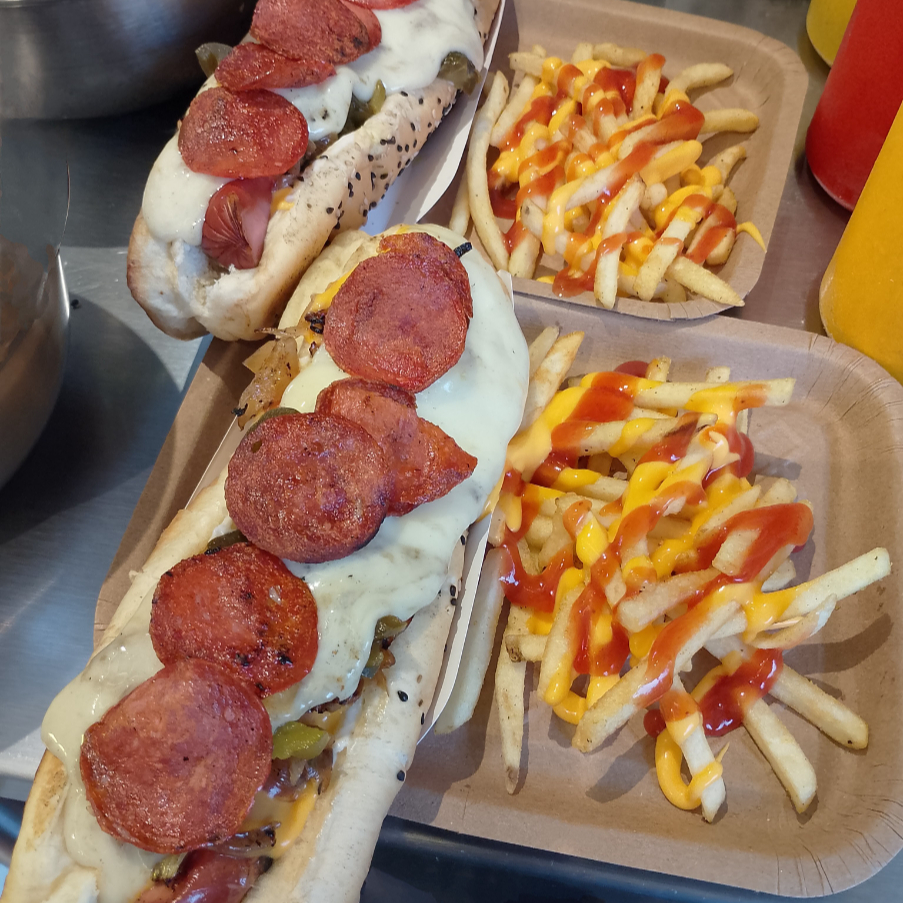 2 hot dogs 30 cm y papas a la francesa