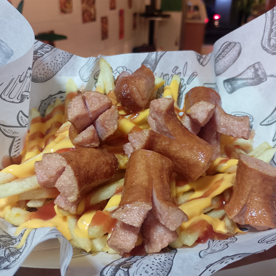 200 grm papas con trocitos de nuestras deliciosa salchicha, catsup y queso nachos.