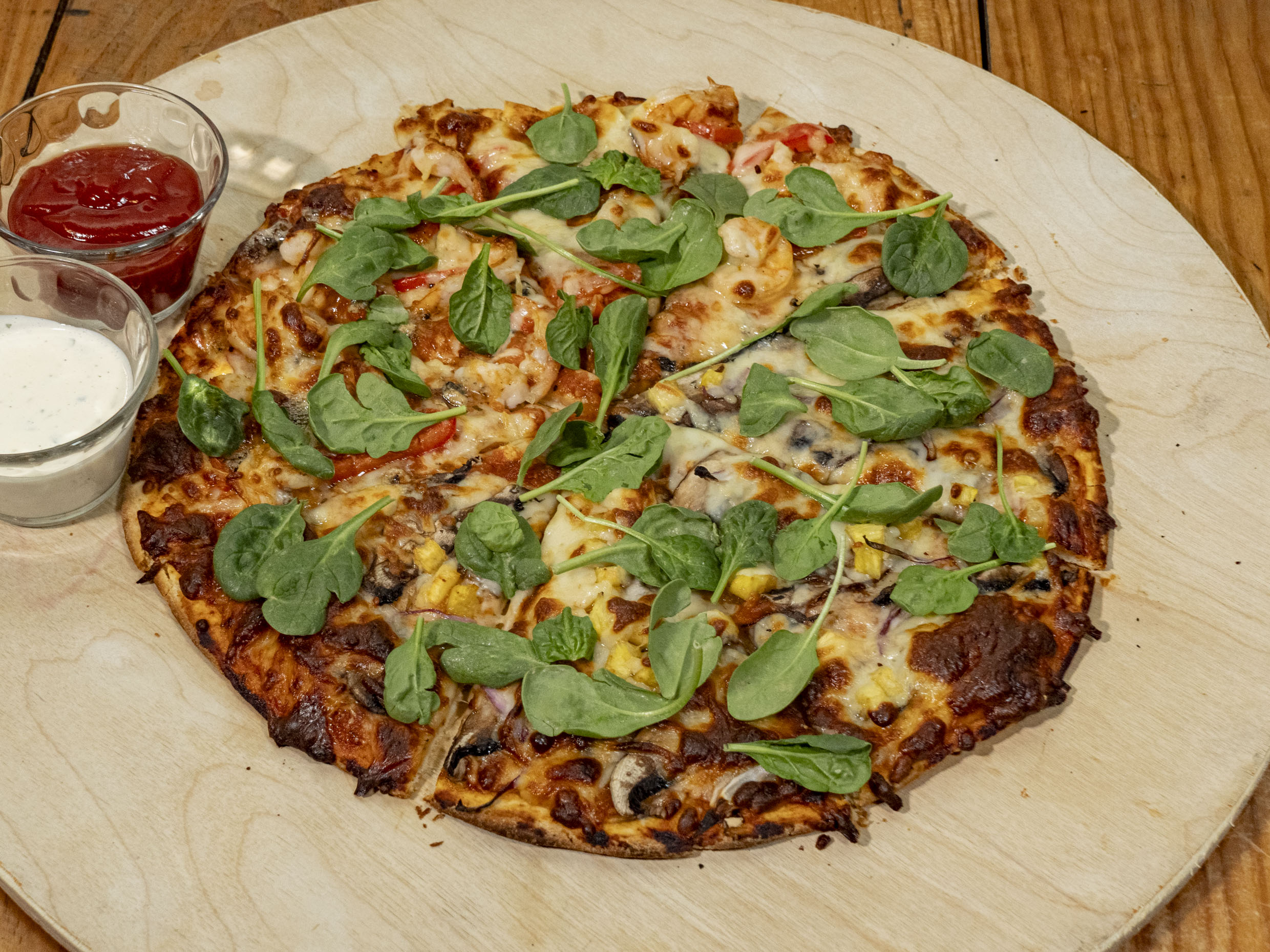 Jitomates cherry jugosos, espinaca baby, cebolla, portobello, piña dulce, un toque de aceite de oliva y pimienta fresca. ¡Una explosión de frescura y sabor en cada bocado!