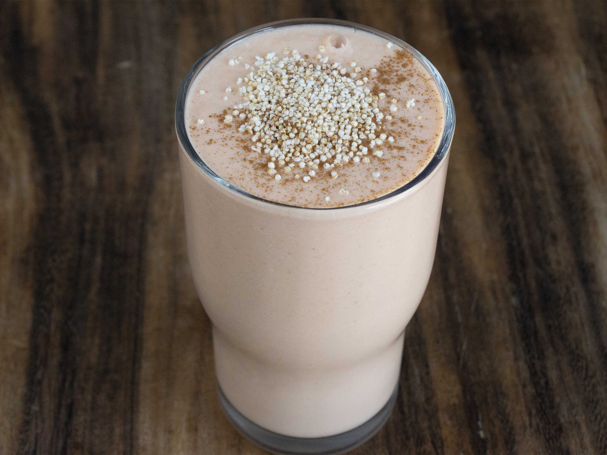 Fresa, leche, avena y azúcar.