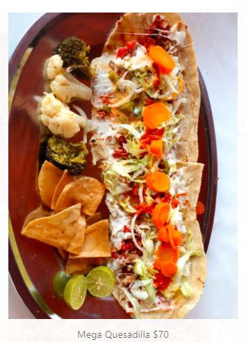 Mega quesadillas rellena el guisado que gustes, todas llevan queso Oaxaca. Se pueden combinar las proteínas. Ya incluyen salsas,pero puedes agregar extras.