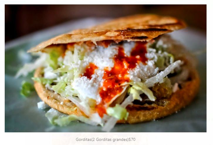 Una Gordita preparada con lechuga, queso y crema. Se pueden combinar las proteínas.