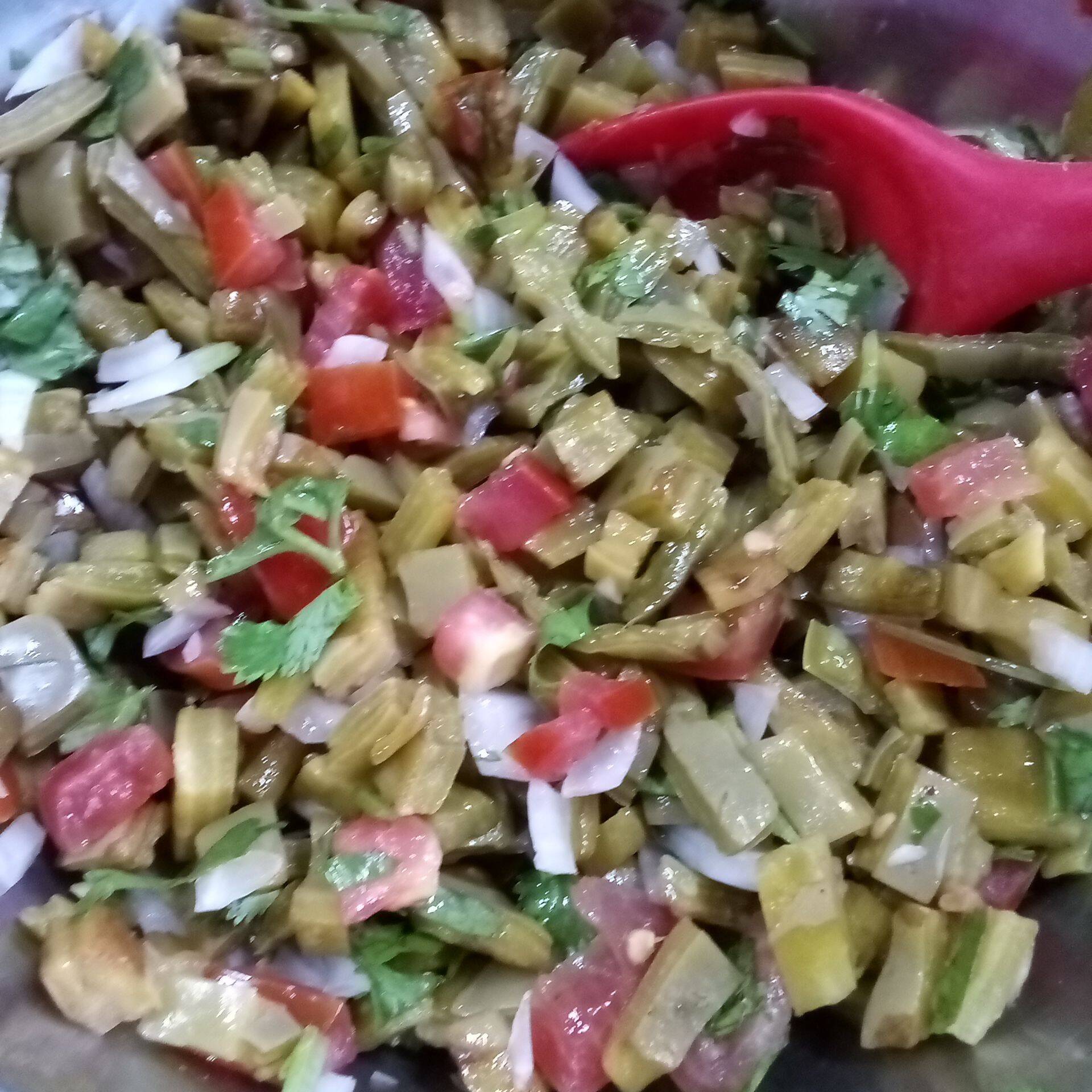 Nopales con jitomate, cebolla, cilantro y chile peron