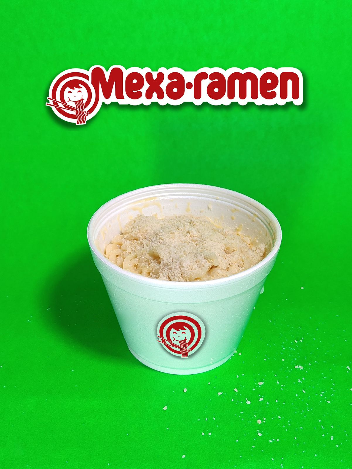 Ramen con esquite, crema, mayonesa y queso.