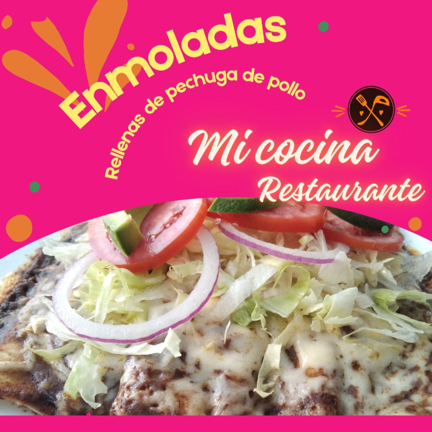 Tortilla rellena de pechuga de pollo bañadas con mole , gratinadas con queso mozarella , acompañado de ensalda
