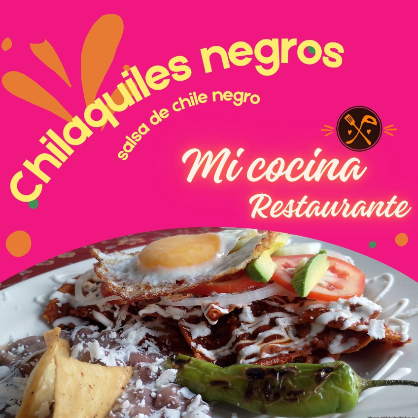 Bañados con salsa de chile negro picositos(escala del 1 al 10 #2) bañados con queso y crema , acompañados de jitomate , aros de cebolla y huevo,
