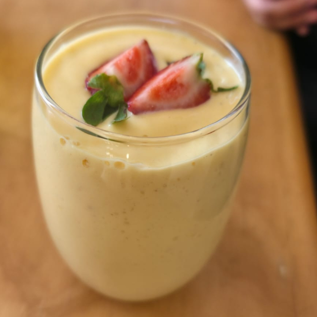 Bebida de la India, refrescante, a base de mango, yogur griego y cardamomo