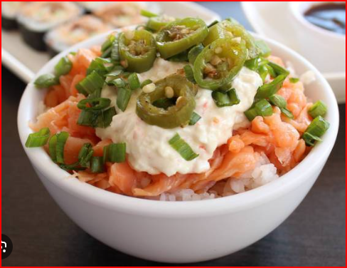 Arroz al Vapor con Filete Crudo,Cebollin,Chiles