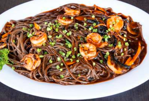 Pasta Tipo Spaguetti con camaron,tocineta,cebolla,zanahoria y col sazonado al estilo oriental l