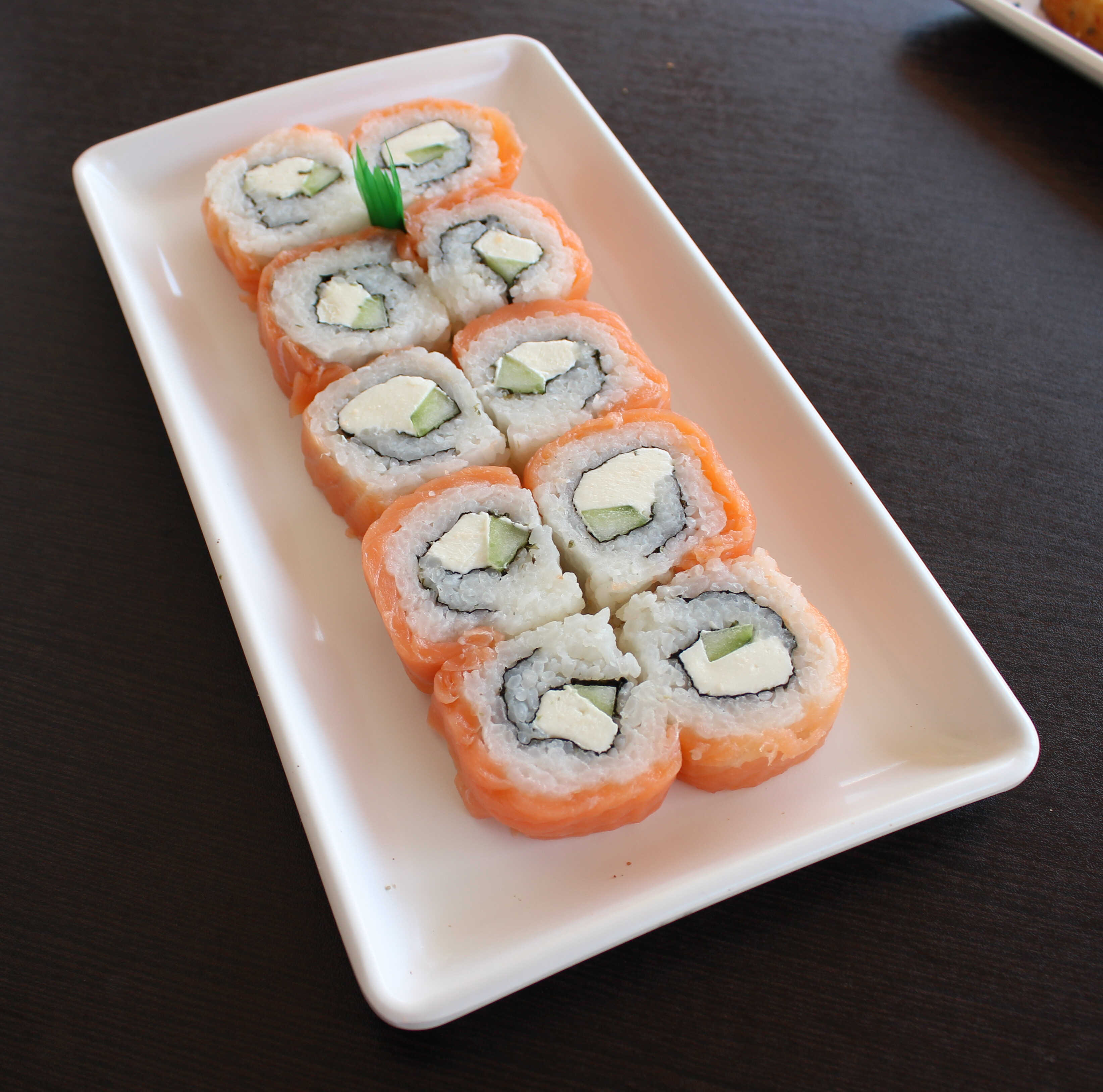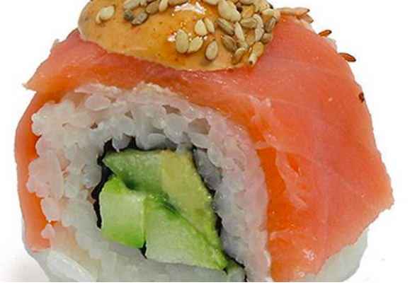 Con Salmon y Philadelphia por fuera pepino,aguacate y chipotle.