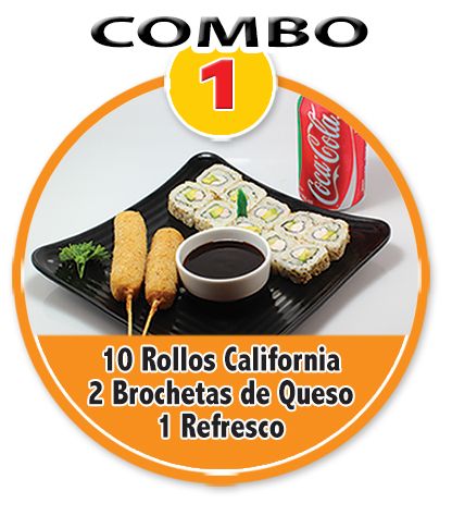 Rollo California*10 + Brocheta de Queso*2 + Refresco*1