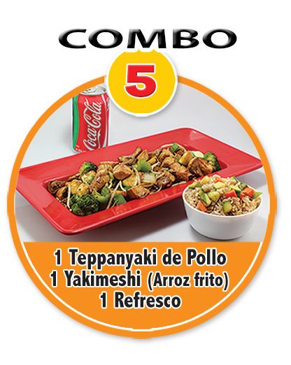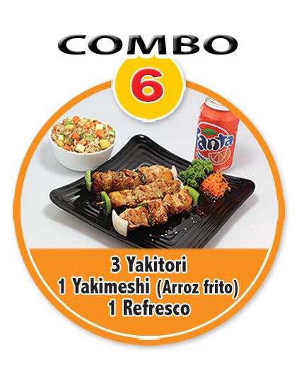 Yakimeshi Verdura*1 + Tepanyaki*1 + California*1 + Brocheta de Queso*1 + Brocheta de Pollo*1 + Refresco*1