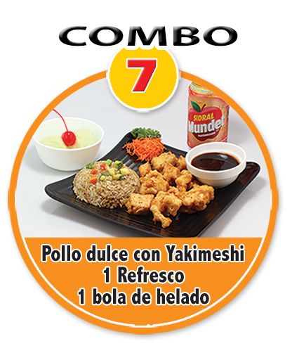 Pollo Dulce con Yakimeshi*1 + Refresco*1 + Bola de Helado*1