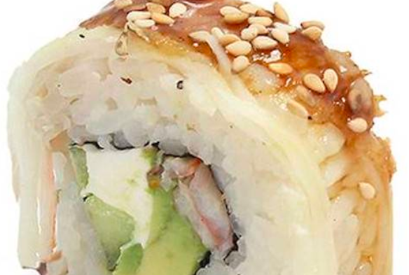queso manchego,salmon,aguacate,queso philadelphia,tampico y salsa dulce.