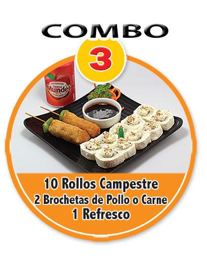 Rollo California*10 + Brocheta de Queso*2 + Refresco*1
