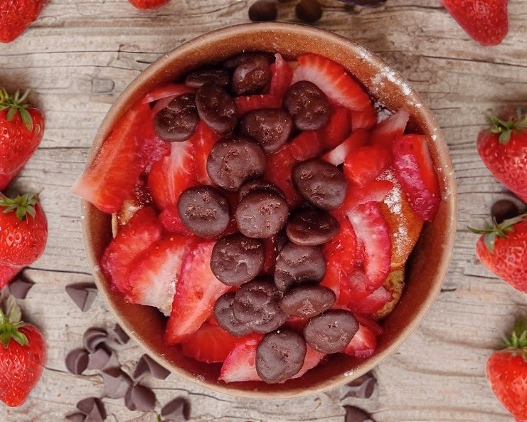 Mini hotcakes acompañados de Fresa +Miel Maple