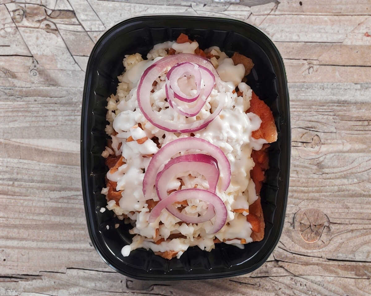 Chilaquiles salsa roja o verde de su eleccion, acompañados de queso, crema y cebolla