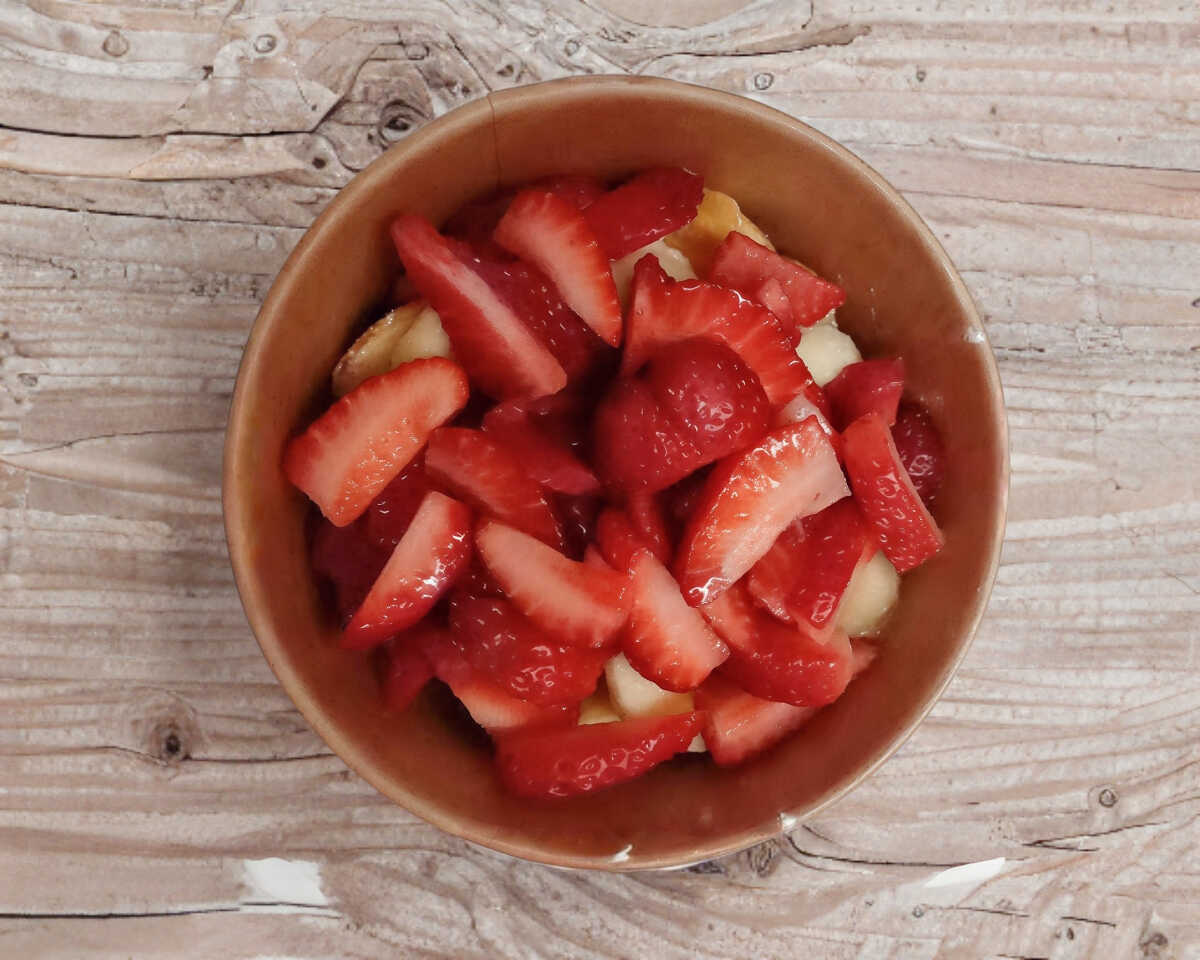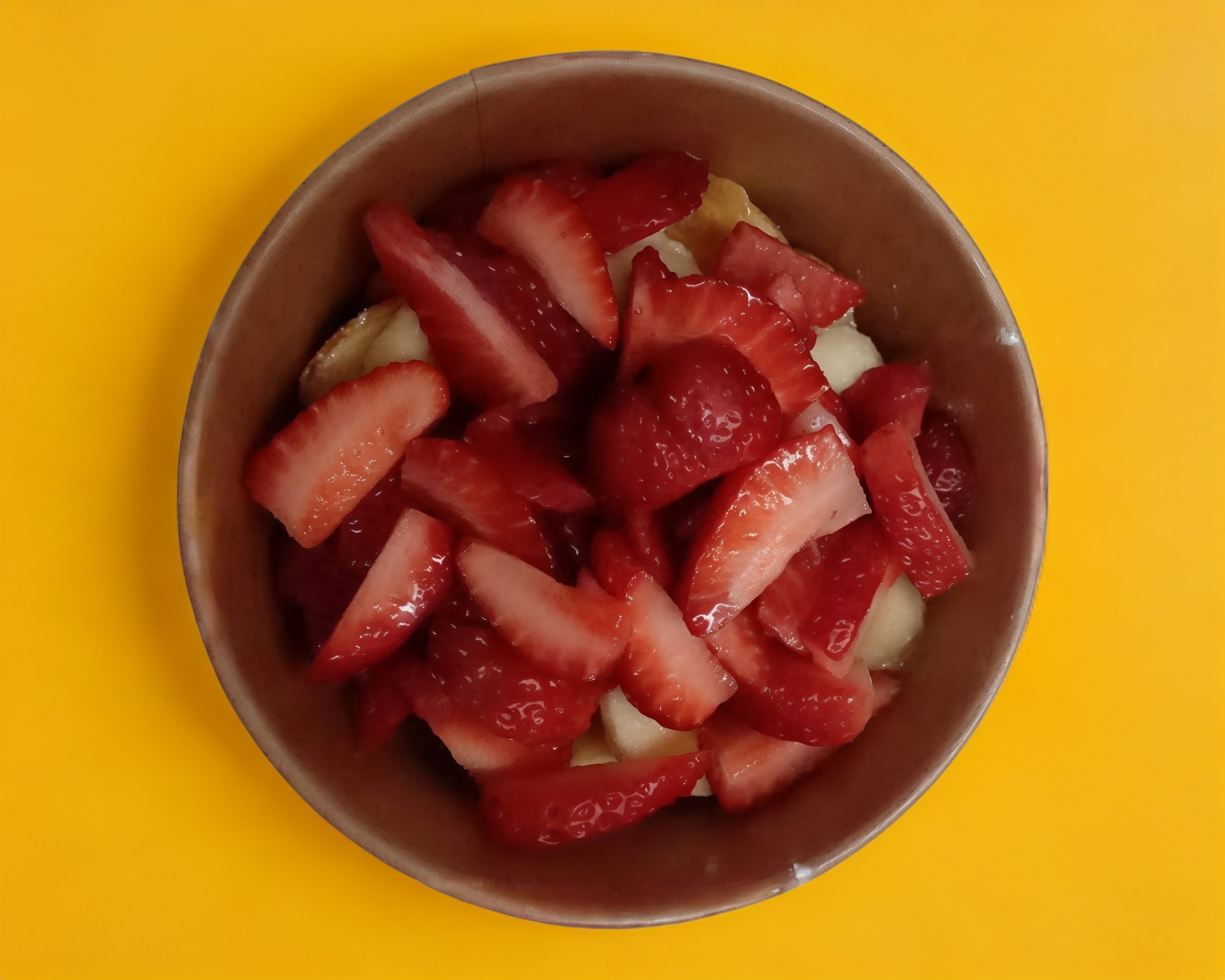 Mezcla de fresa, zarzamora y blueberry acompañadas de yoghurt griego y granola