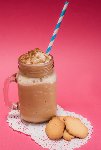 Delicioso frappé sabor a galleta. Tipo de leche a elegir.