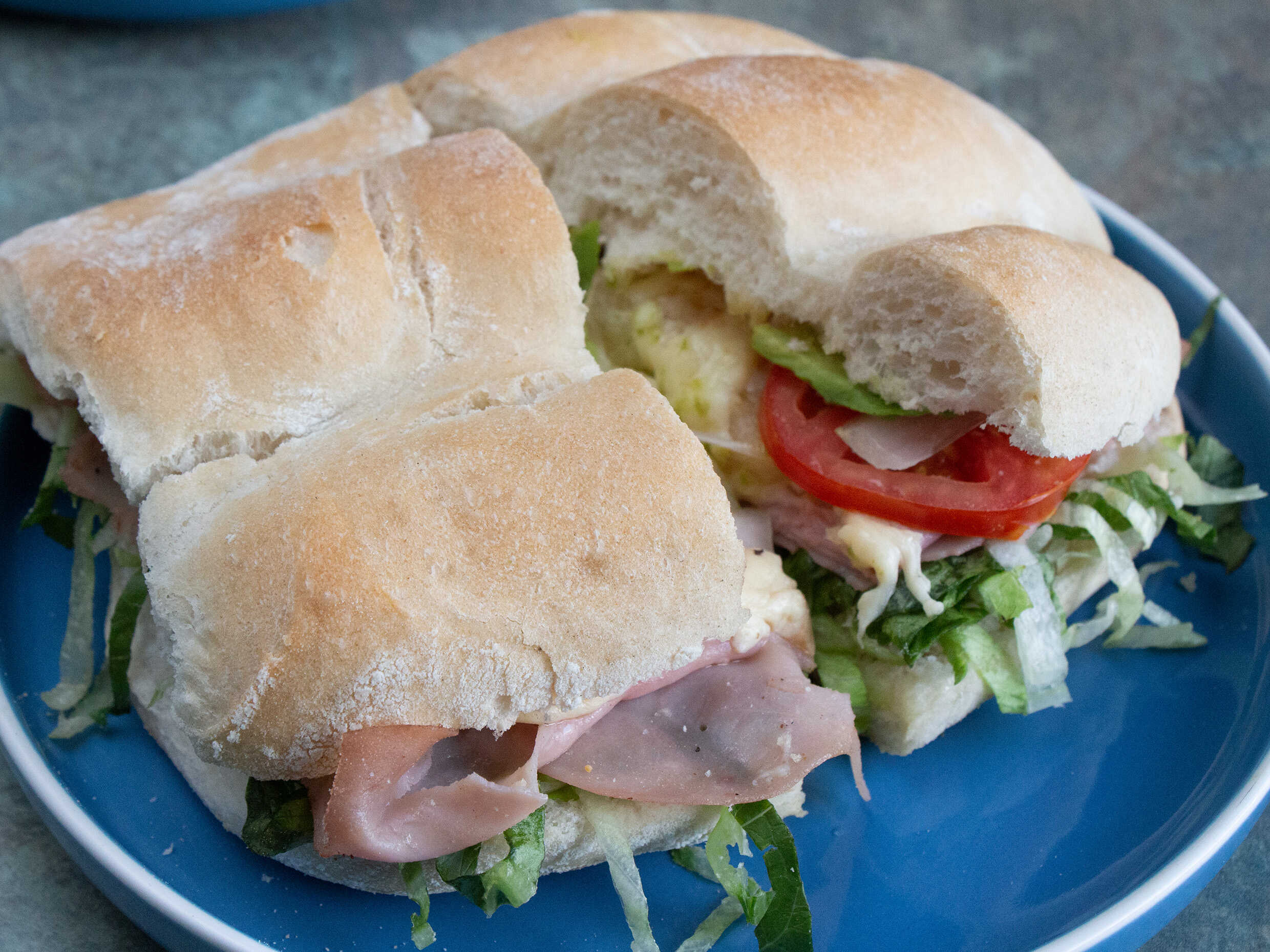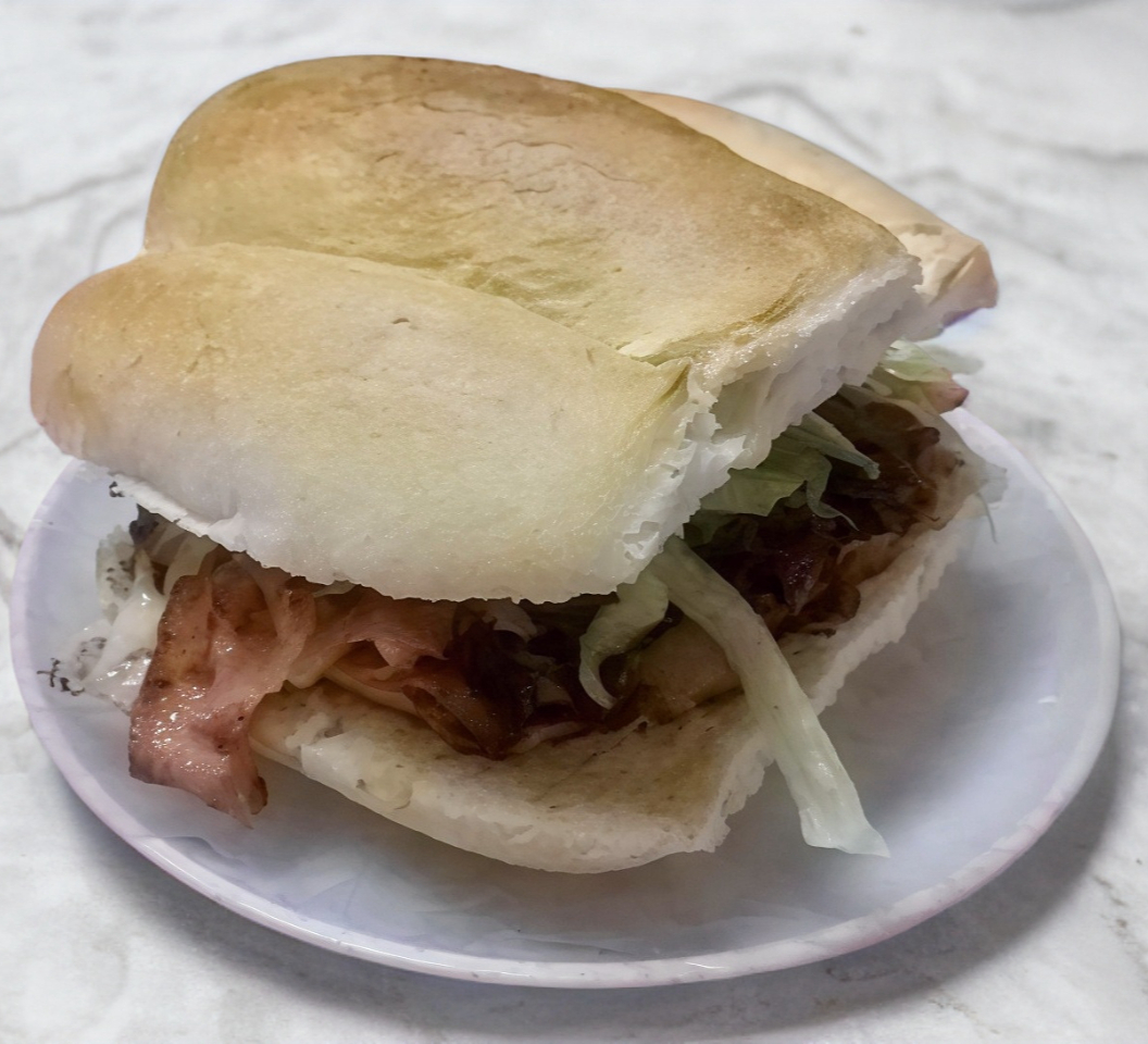 Jamón de pavo, piña y queso asadero fundido. Preparada con mayonesa jitomate, aguacate, lechuga, cebolla y chile jalapeño.
