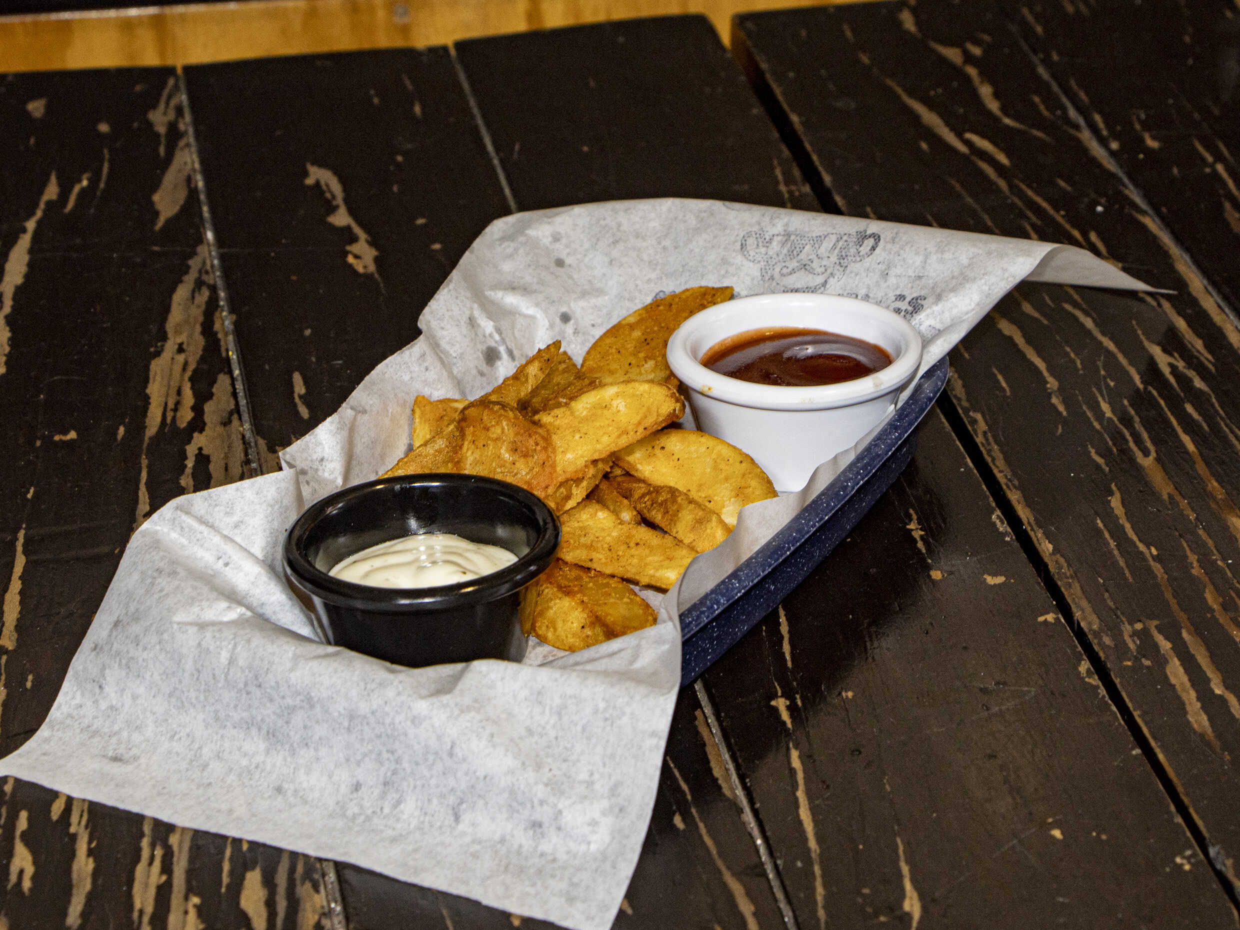 Papas gajo salteadas con deep de catsup y aderezo, más salsa a elegir.