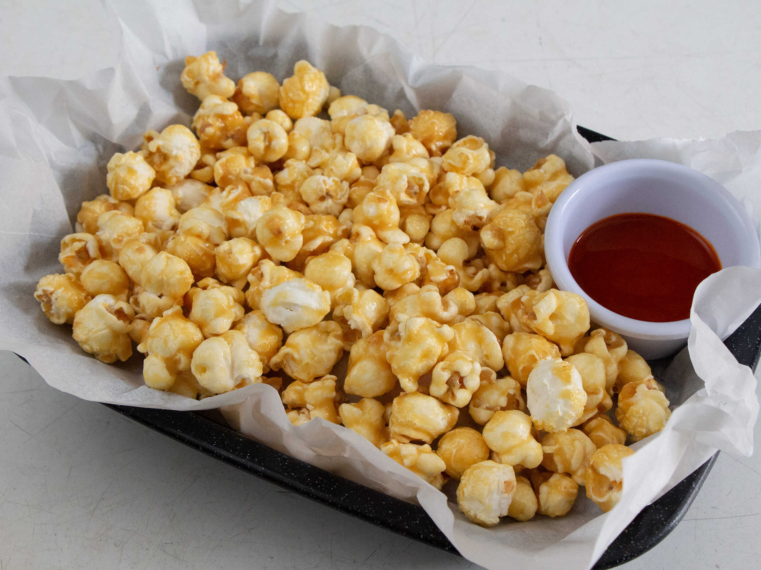 Palomitas de Pechuga empanizada, aderezo o cátsup y salsa de la casa a elegir.