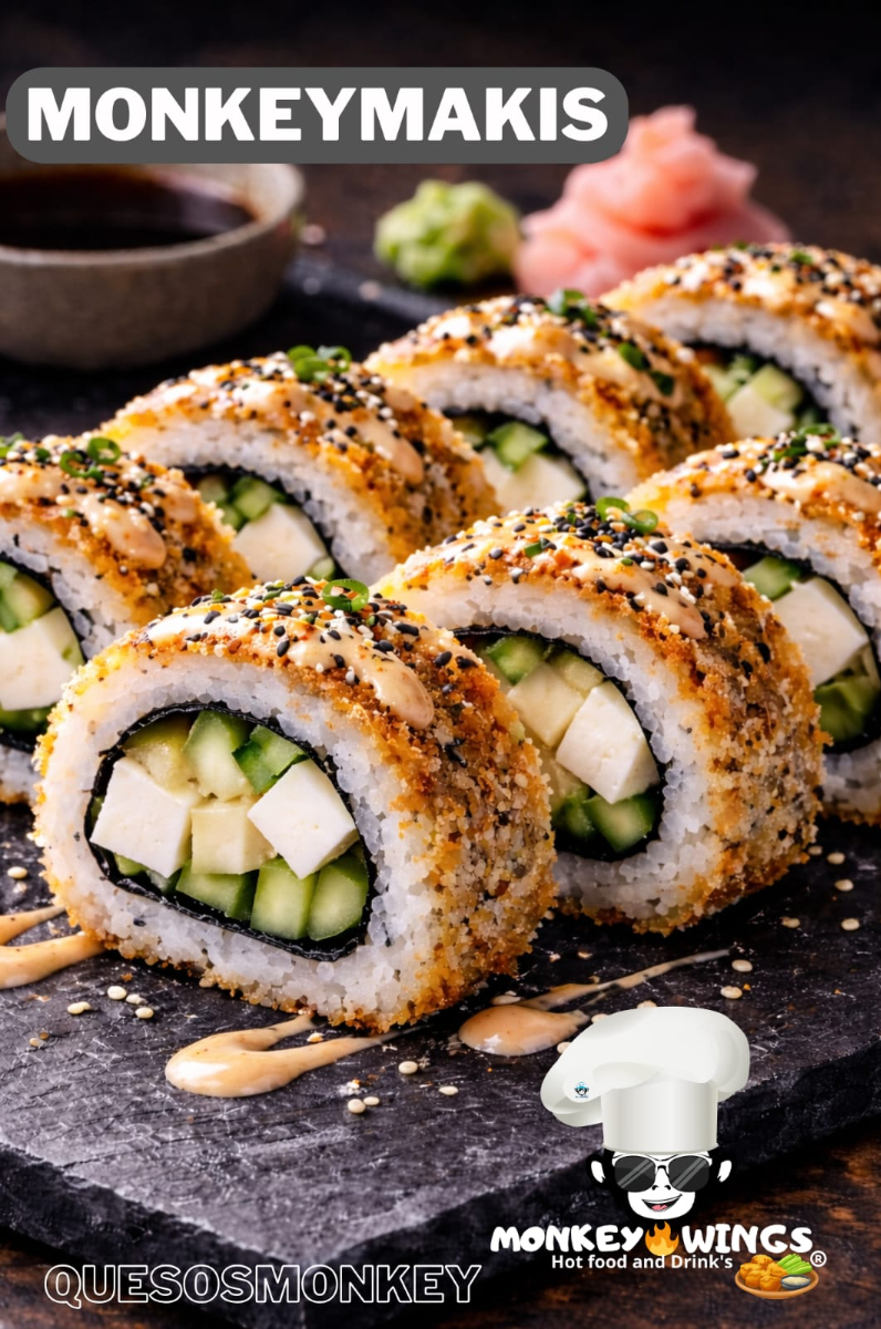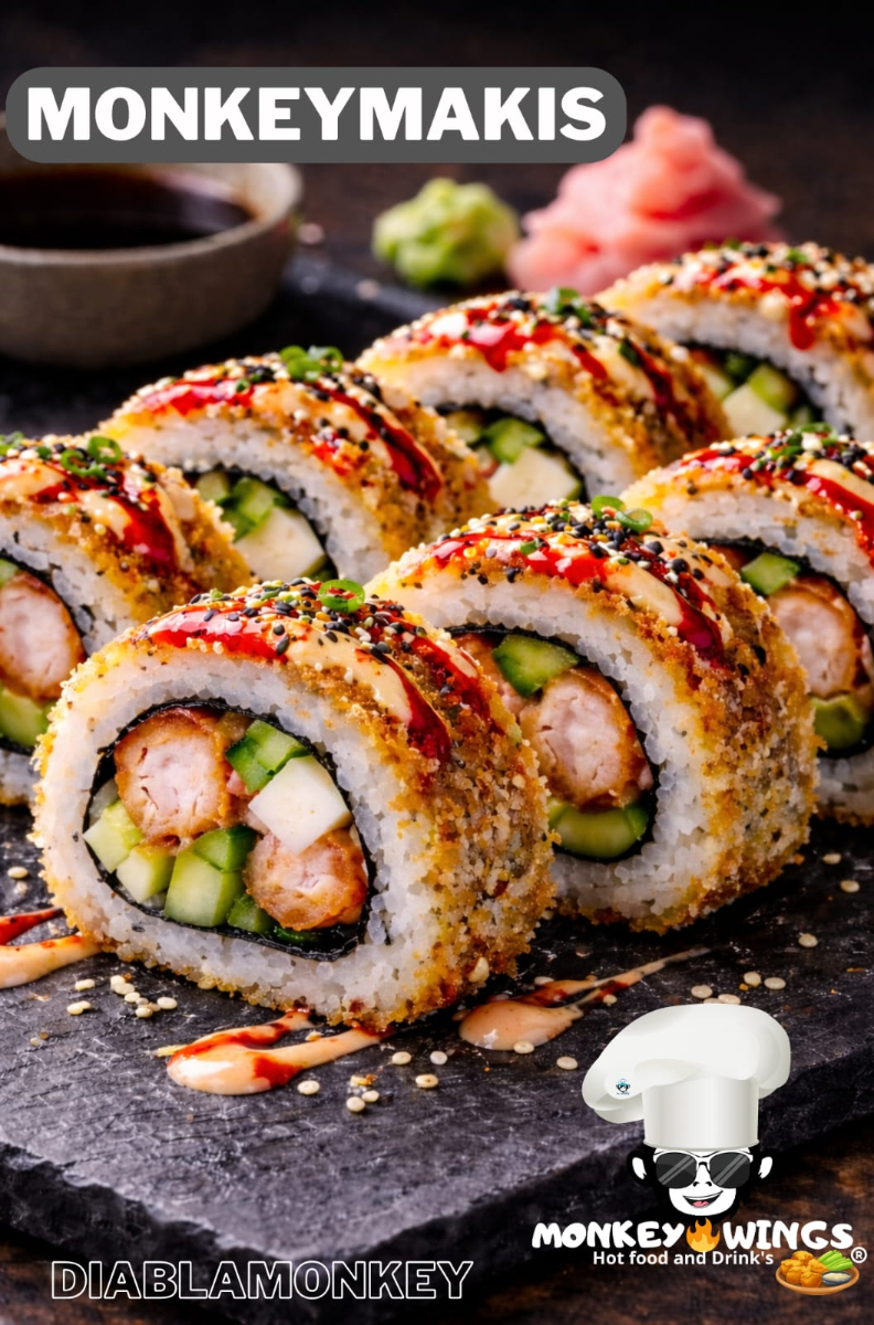 Camarón, pepino, aguacate Filadelfia & Nori, salsa a la diabla