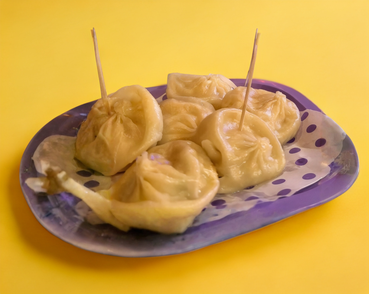 Orden de 6 dumplings, fina capa de pasta, rellenos de una mezcla de pollo con vegetales.